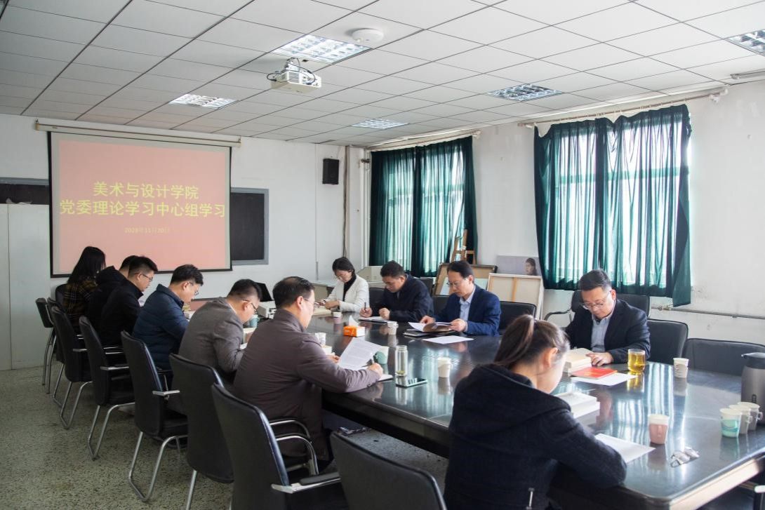 11月20日,美术与设计学院党委理论中心组进行集体学习,学校党委常委、宣传部部长贾海宁列席参加,学院全体理论中心组成员参加了本次集中学习,学习由党委书记陈春锋书主持。