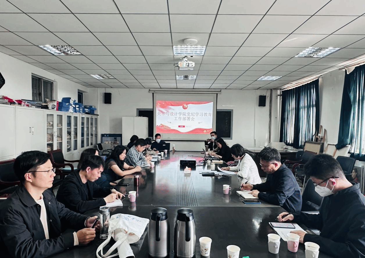 4月16日下午,美术与设计学院召开党纪学习教育工作部署会,传达学习了习近平总书记关于党纪学习教育的重要讲话和重要指示精神并部署党纪学习教育工作。会议由学院党委书记陈春锋主持,学院领导班子、各支部书记、部分教师代表参会。