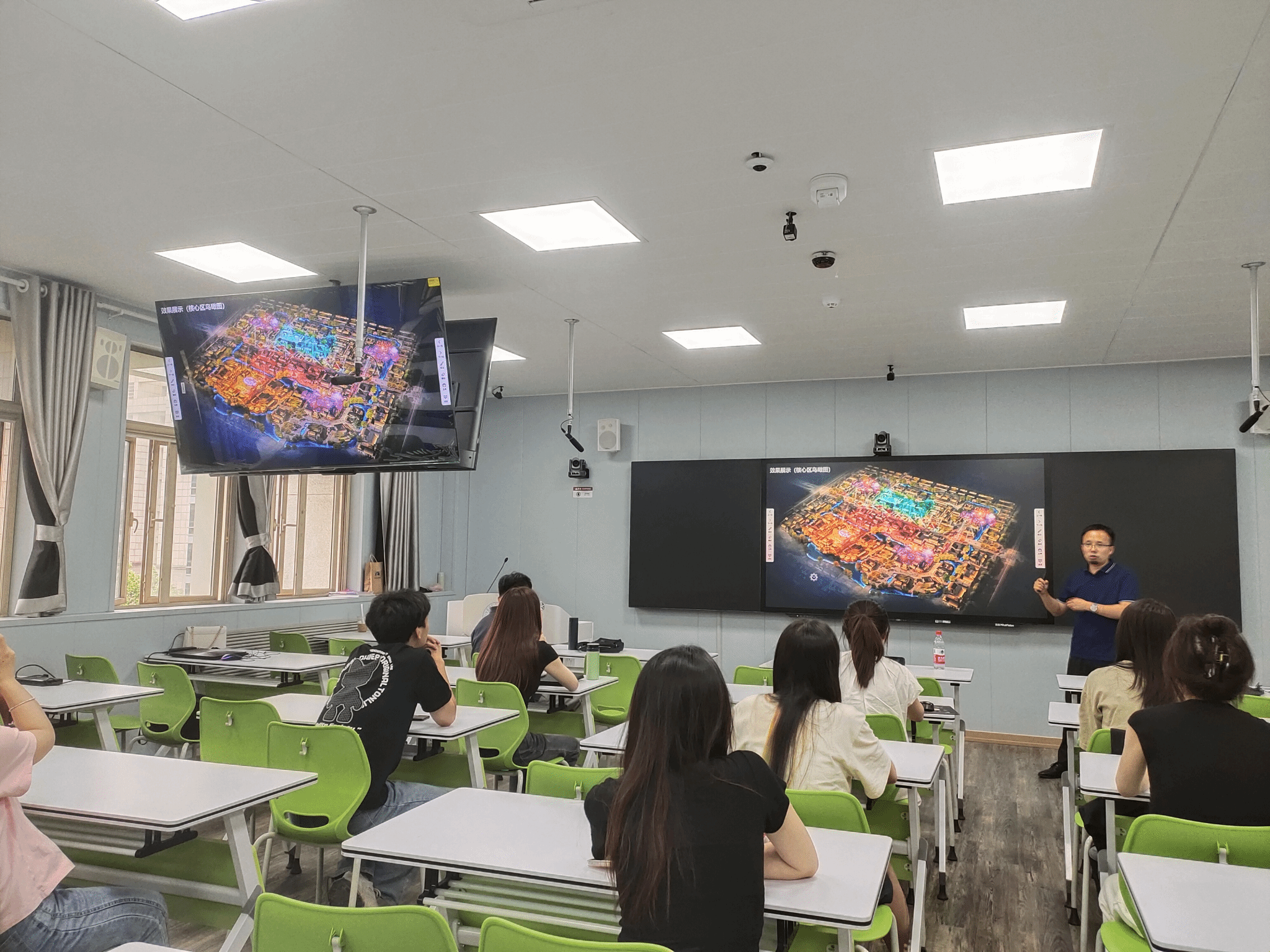 高所长结合国家政策和实例深入分析了文旅照明的重要性,强调设计前期照明规划的关键作用,并以琅琊古城和百花洲的照明项目为例,向学生们介绍了文旅项目光环境设计的策略和实践方法:琅琊古城分七个主题展区,提出了留、改、增的设计策略;百花洲项目充分运用了济南独特的文化优势,将传统诗词元素和文化底蕴融入了照明设计。高所长分享案例的整个过程,理论与实践紧密结合,并通过展示改造后的照明场景进一步阐释了设计策略与项目落地相结合的具体方法。
