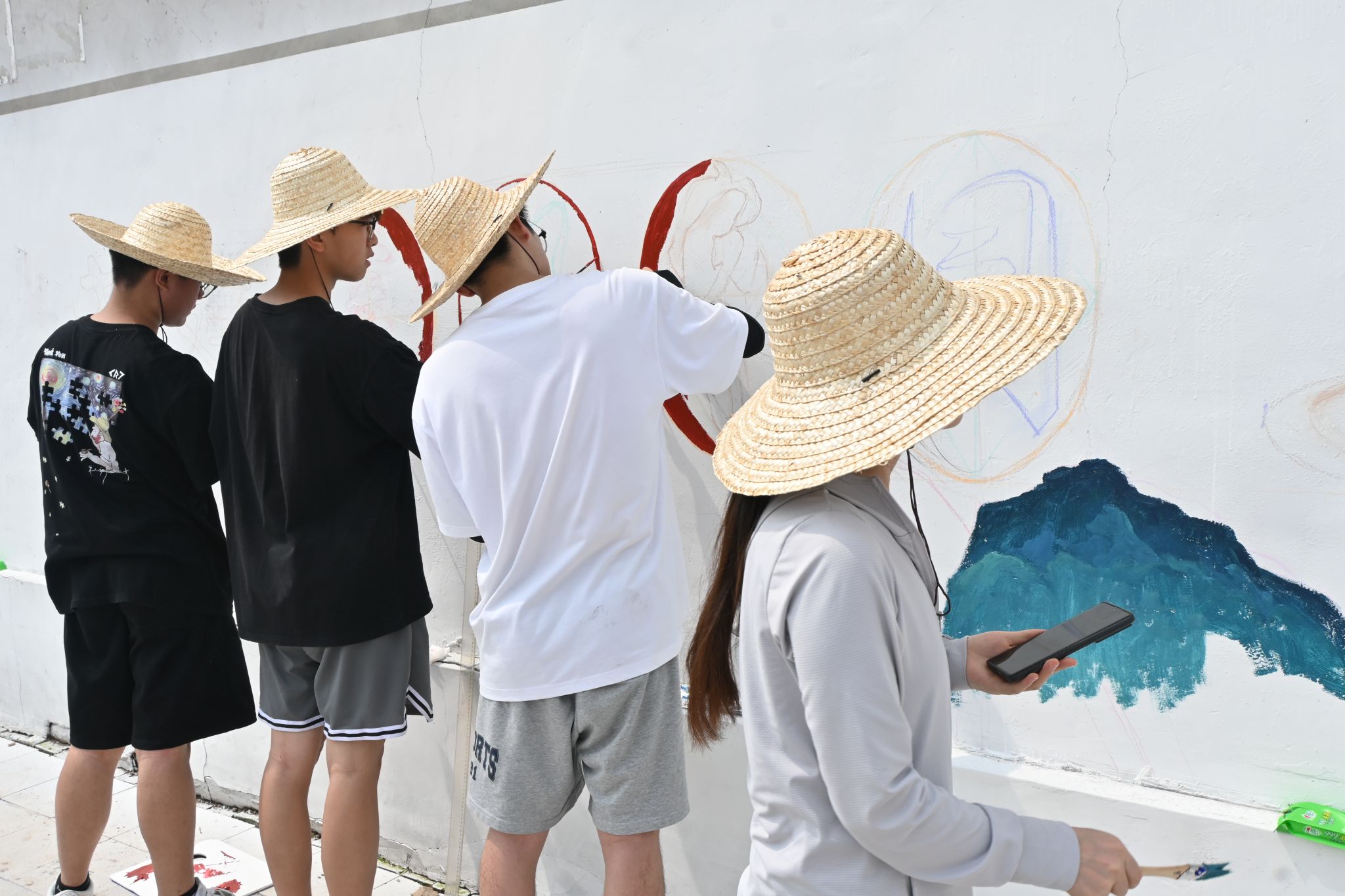 美术与设计学院“彩绘乡村梦,振兴共繁荣”乡村振兴实践团涵盖美术学、环境设计、视觉传达设计、服装与服饰设计等多个专业,一队12人深入村落开展实地调研考察、墙面测量、设计方案研讨等系列工作,完成了400余平方米的墙绘工作。同学们用绘画的方式把对祖国的深深眷恋、对党和人民的赤诚热爱融入到一幅幅乡村墙绘上,用实际行动助力乡村振兴。