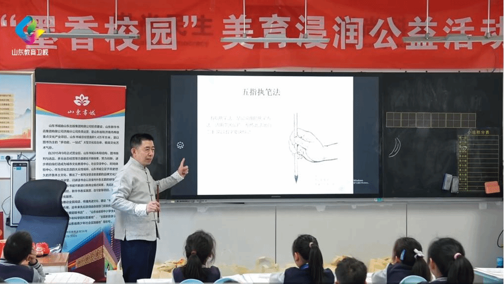 美术与设计学院在山东师范大学附属小学成功举办了“墨香校园”美育浸润公益活动。