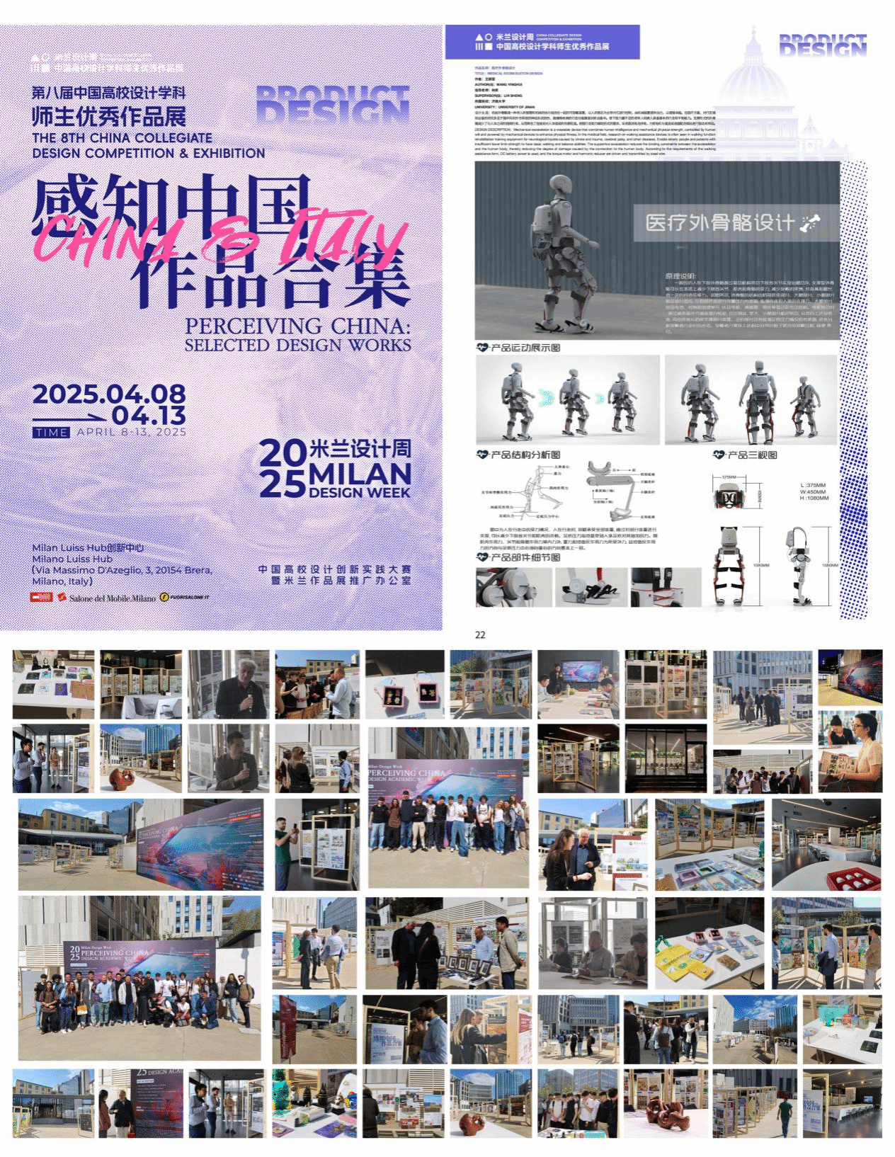 美术与设计学院工业设计专业王颖慧同学设计、工业设计系主任林昇老师指导的《医疗外骨骼设计》作品,成功入选本次展览。该作品以人机协同技术助力行走康复为核心理念,通过创新结构设计优化穿戴舒适性与安全性。