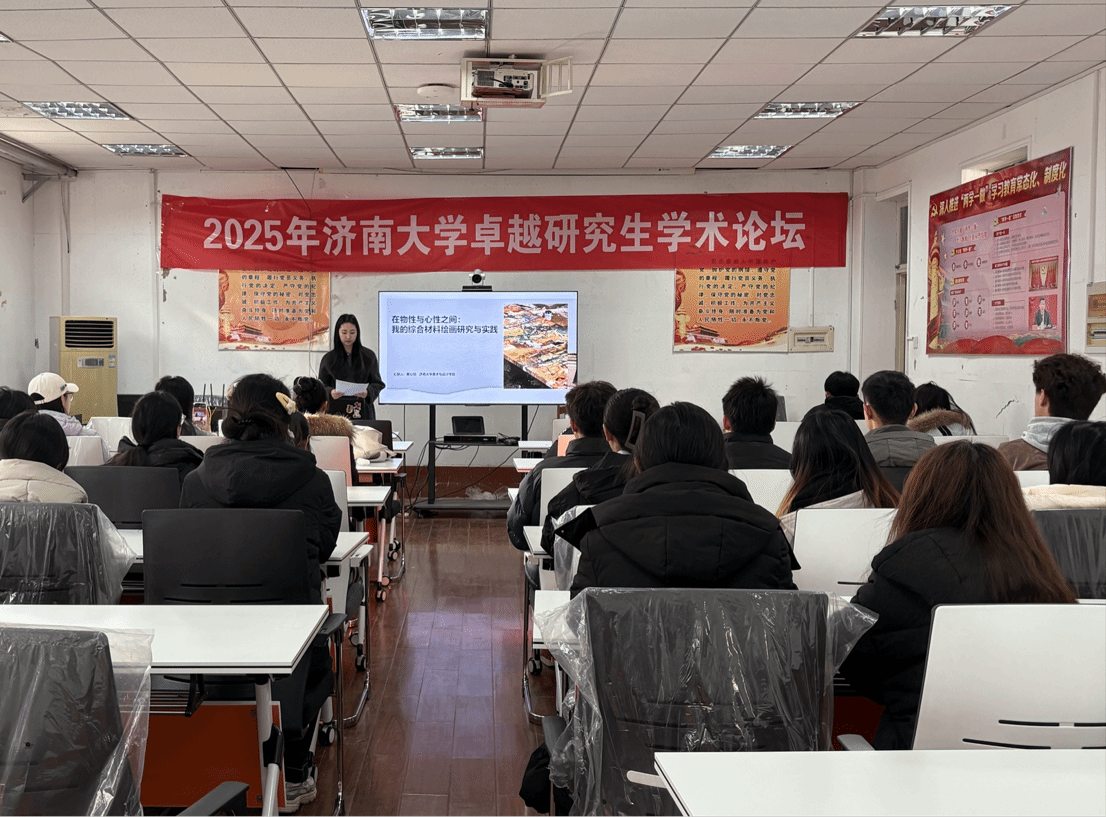 研究生院主办、美术与设计学院承办的2025年“卓越”研究生学术论坛在第4教学楼举办。本次论坛邀请了美术与设计学院三位国家奖学金获得者担任主讲,美术与设计学院研究生辅导员王鹏飞、2025级全体研究生共同参与了此次活动。