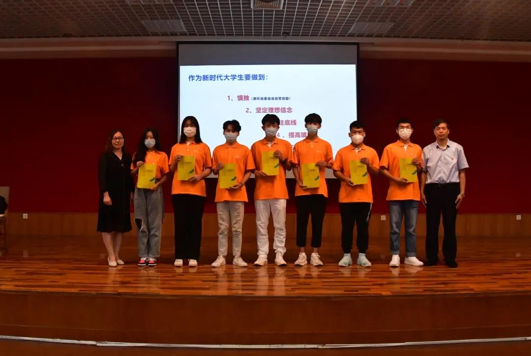 在互动环节中,新生向李朋忠教授提出问题,并赠送手绘济大纪念册和明信片,李朋忠教授也给每个班级颁发手绘济大纪念册,并与张敬娜老师、班级代表合影留念,记录下这一美好瞬间。最后,刘军副书记对这次讲座进行了总结,要放眼当下,紧扣新时代大学生的要求,弘扬爱国主义精神,争做时代新青年。