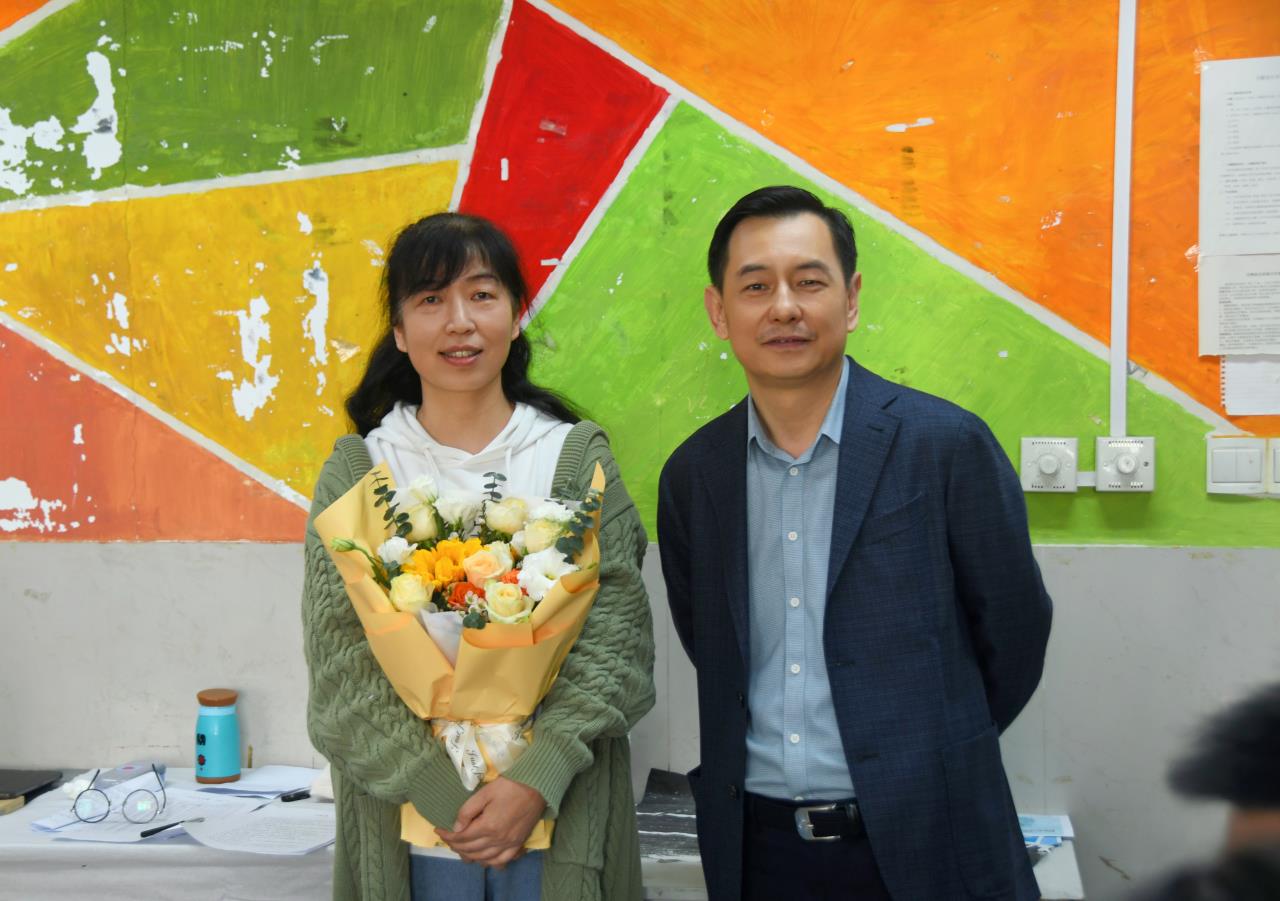 今天在岗上课的女教师赠送了鲜花,向她们表达了亲切问候和美好祝愿。