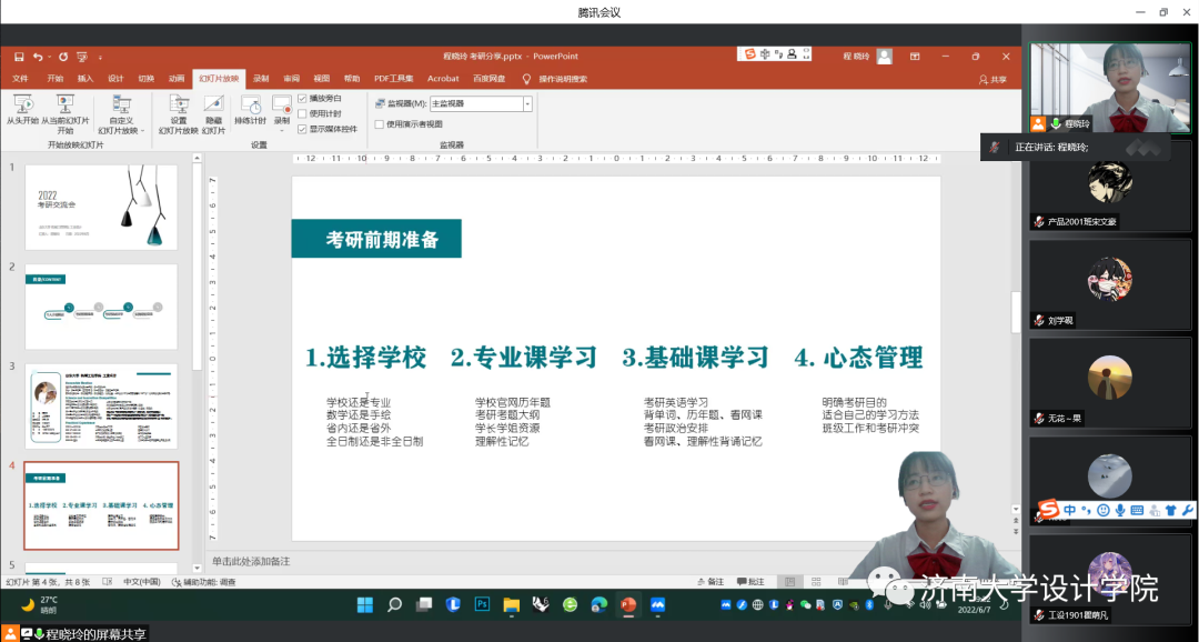 设计学院于6月27日晚上7:30在腾讯会议群举办了线上考研经验交流会。