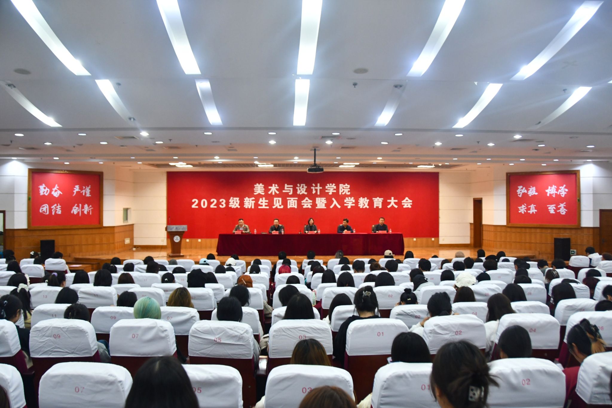 10月17日下午,美术与设计学院2023级新生见面会暨新生入学教育大会在第二学术报告厅举行。学院党委书记陈春锋,副院长杨海波,党委副书记、副院长何贵亮,副院长赵忠超,院长助理桑曙光,学院教师代表及全体2023级新生出席大会。会议由学院党委副书记、副院长何贵亮主持。