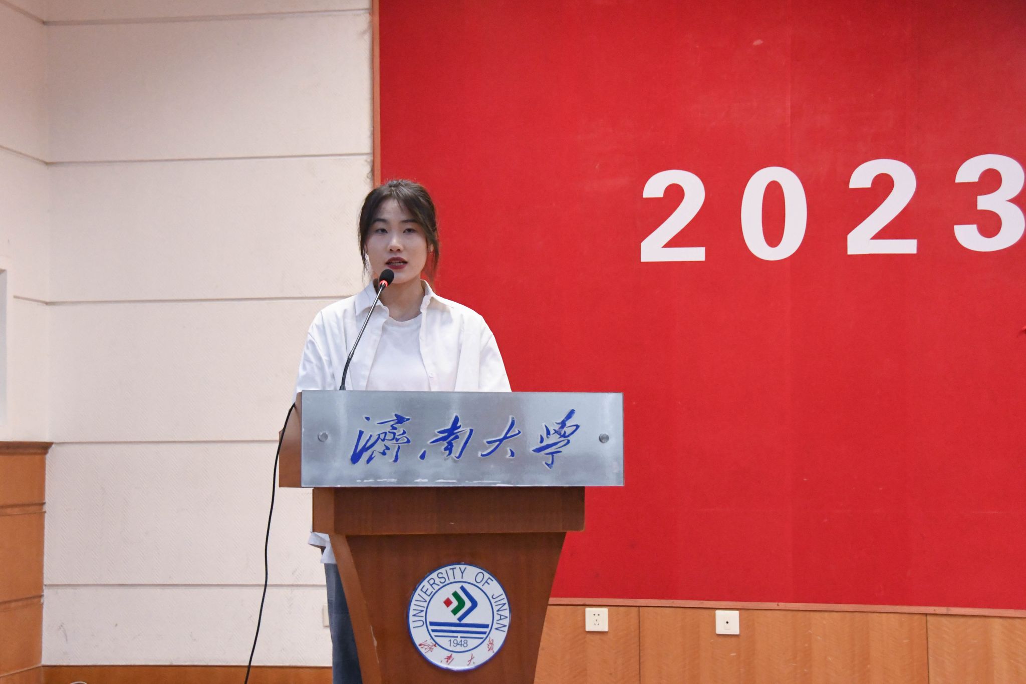 丁奕翔副教授作为教师代表发言,希望同学们尽快适应大学环境实现角色的转换,把学习作为首要任务,珍惜时间,把握时机,不断充实自己,成为社会栋梁。在校生代表环艺2101班刘佳茗,鼓励师弟师妹们在大学中摆正自己学习的心态,不抱怨、不躺平,亲自去尝试、去探索,勇敢去追求自己内心的东西,坚定自我,热爱生活。新生代表工设2301班陈佳艺表达了初识济大美院的快乐和激动,站在新的起点,期望着更多的机遇和挑战,期望着结交八方英才,更期望沿着无数优秀校友的足迹,在济大美院愈加成熟、稳重与自信。