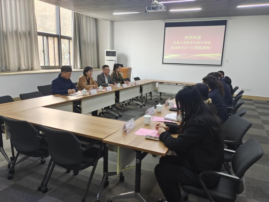 11月24日下午,一行人到访南京工业大学艺术设计学院。南京工业大学艺术设计学院党委书记周静、院长钱才云、副院长吴海红、院长助理钱凤德和各科室负责人参加了活动。周静对陈春锋一行表示热烈欢迎,钱才云院长从学科专业、人才培养、师生概况、学术交流等方面介绍了南京工业大学艺术设计学院的整体概况。陈春锋简要介绍了成人短视频