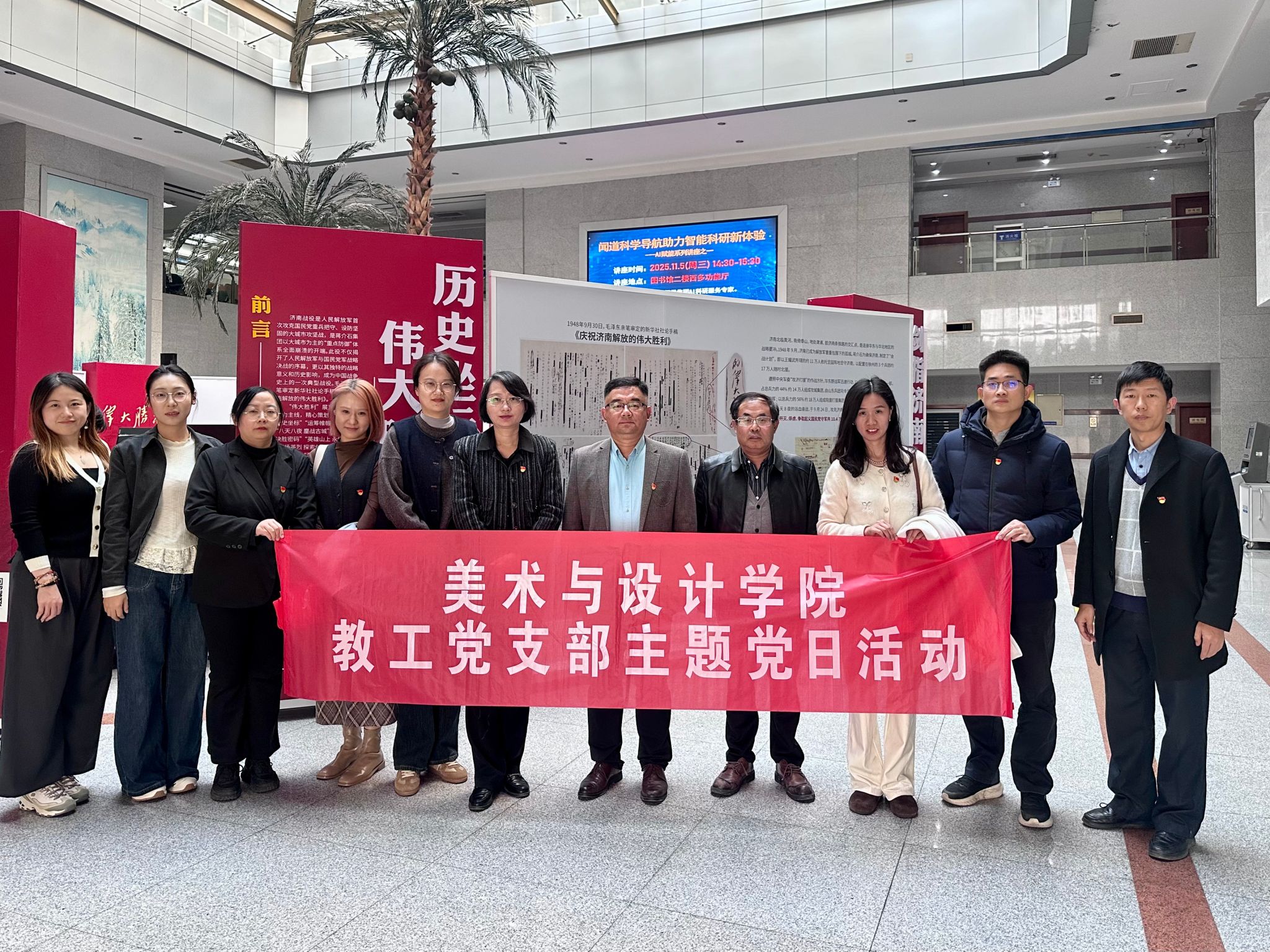 11月5日,为更好地学习贯彻党的二十届四中全会精神,坚持立德树人根本任务,永葆为党育人、为国育才初心使命,美术与设计学院党委组织教工各支部联合开展主题党日活动,集体参观学习《伟大胜利——济南战役史实展》。