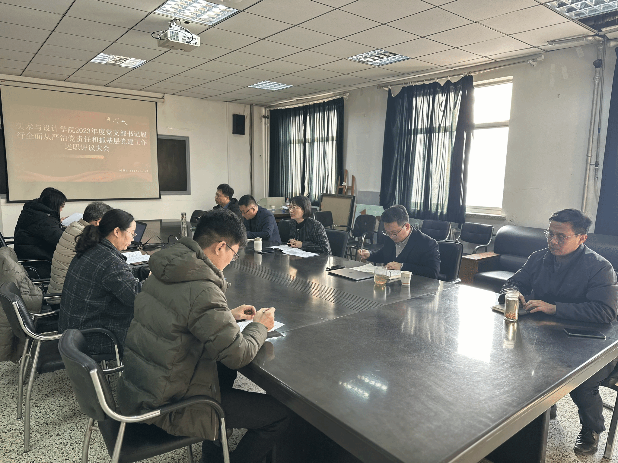 1月12日上午,美术与设计学院党委召开2023年度党支部书记述职评议考核会,学院党委委员、组织员、各党支部书记参加会议,会议由学院党委书记陈春锋主持。