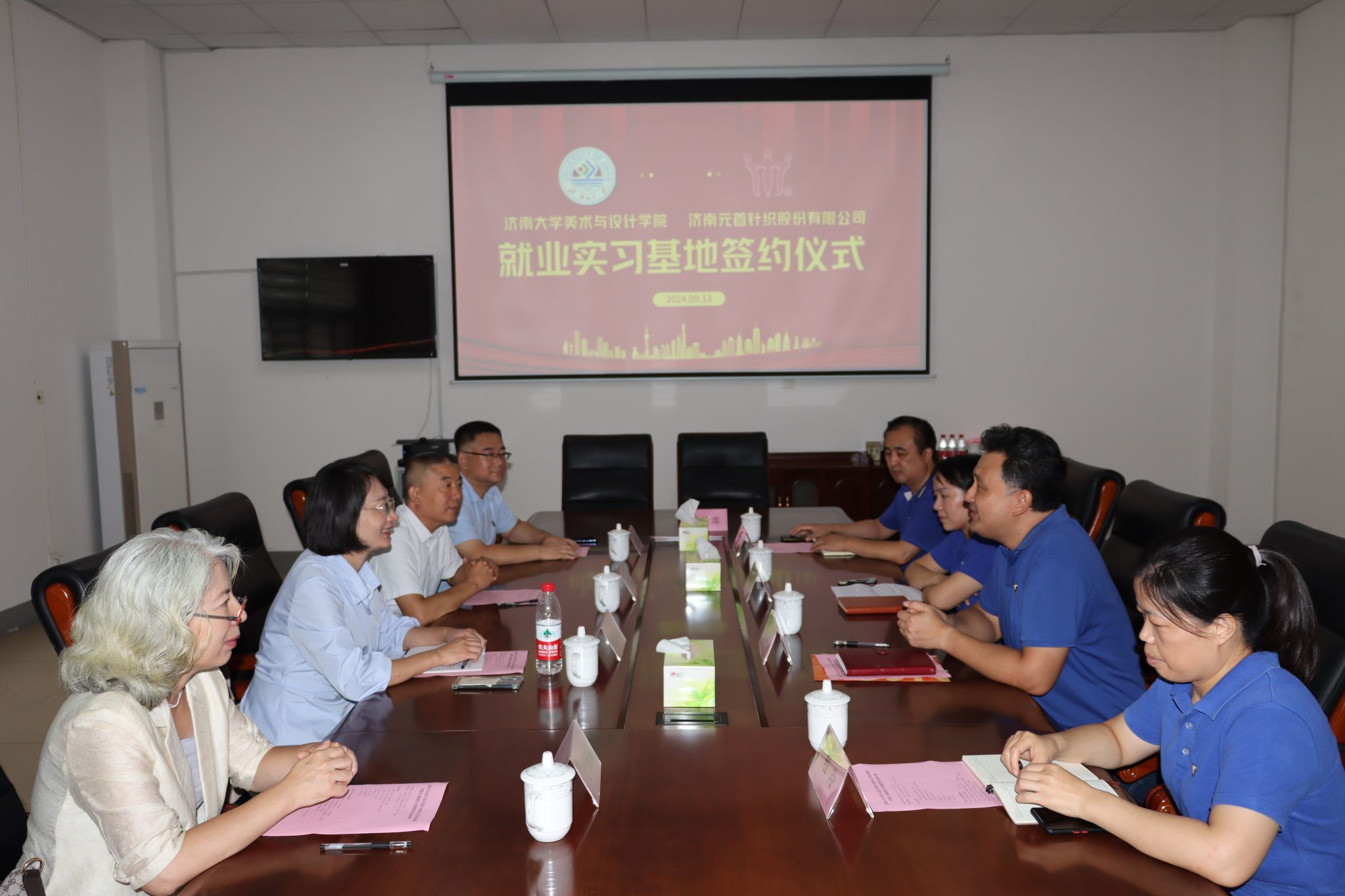 为进一步推进学院毕业生高质量就业,贯彻落实“百校万企万师双进”行动方案,加强校企合作交流,实现供需有效对接。9月13日上午,美术与设计学院一行赴济南元首针织股份有限公司开展访企拓岗暨产学研合作交流活动。济南元首针织股份有限公司党委副书记明建建,副总经理徐洪武及相关部门负责人,美术与设计学院党委书记陈春锋,党委副书记、副院长何贵亮及教师代表参加活动。
