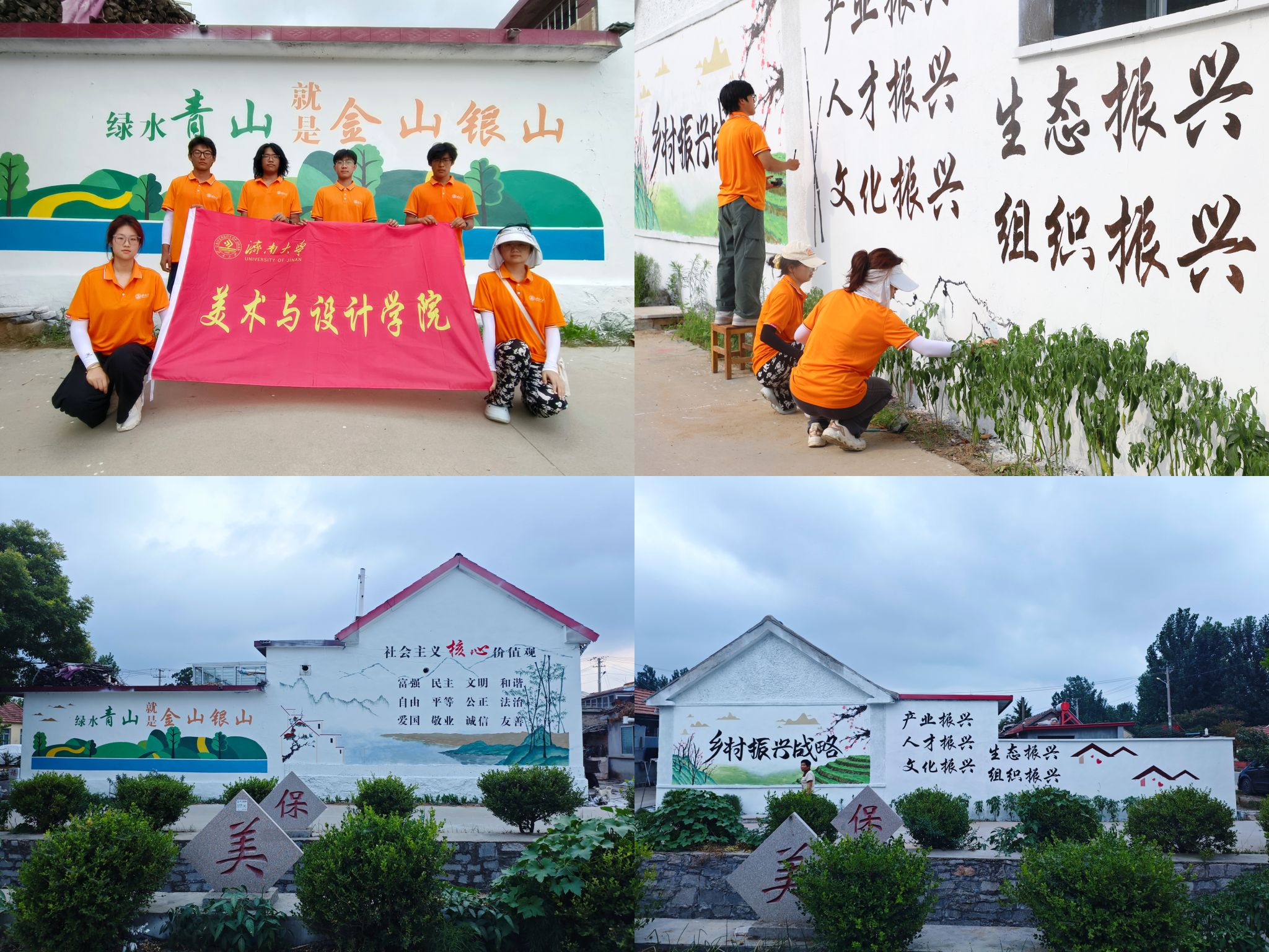 为深入学习贯彻习近平总书记关于青年成长成才的重要论述和关于乡村振兴、美育工作的重要指示精神,进一步引导广大青年学生在社会课堂中受教育、长才干、作贡献,7月6日至12日,美术与设计学院组织社会实践团队,分别奔赴日照五莲县与菏泽郓城县,开展以“以美润心,以笔绘兴”及“绘画书法进乡村,笔墨点亮乡村情”为主题的暑期“三下乡”社会实践活动。