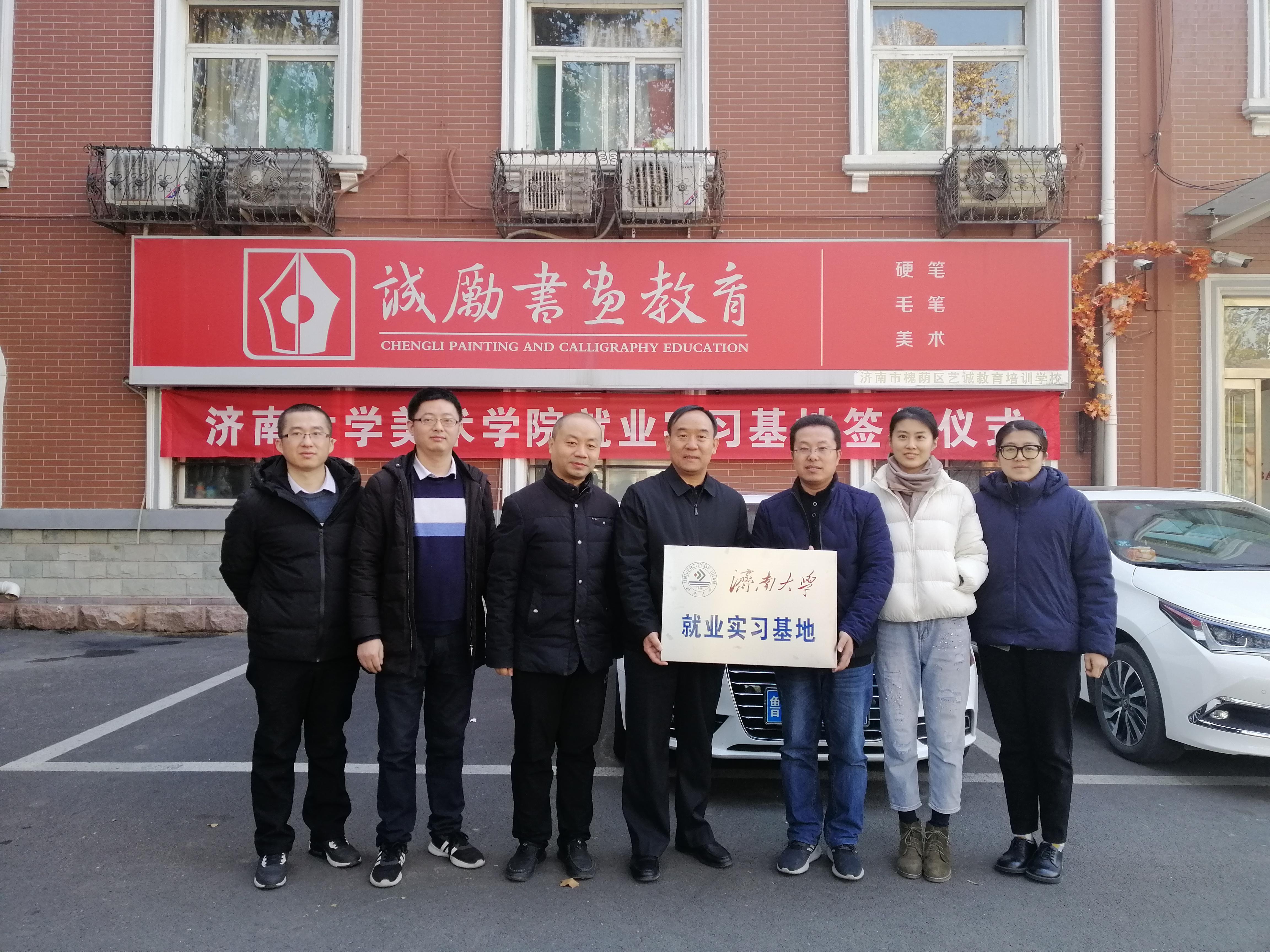 美术与设计学院与诚励书画教育培训学校举行就业实习基地签约仪式。诚励书画教育培训学校校长梁成立,张志伟,美术与设计学院党委副书记、副院长刘军,团委书记信苏珊,张婧老师、王琦老师共同参加了此次签约仪式。