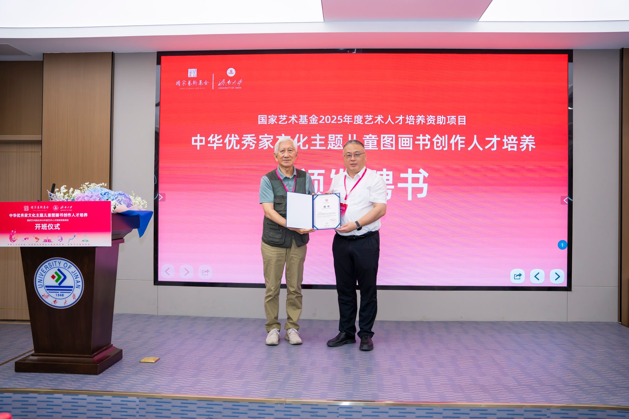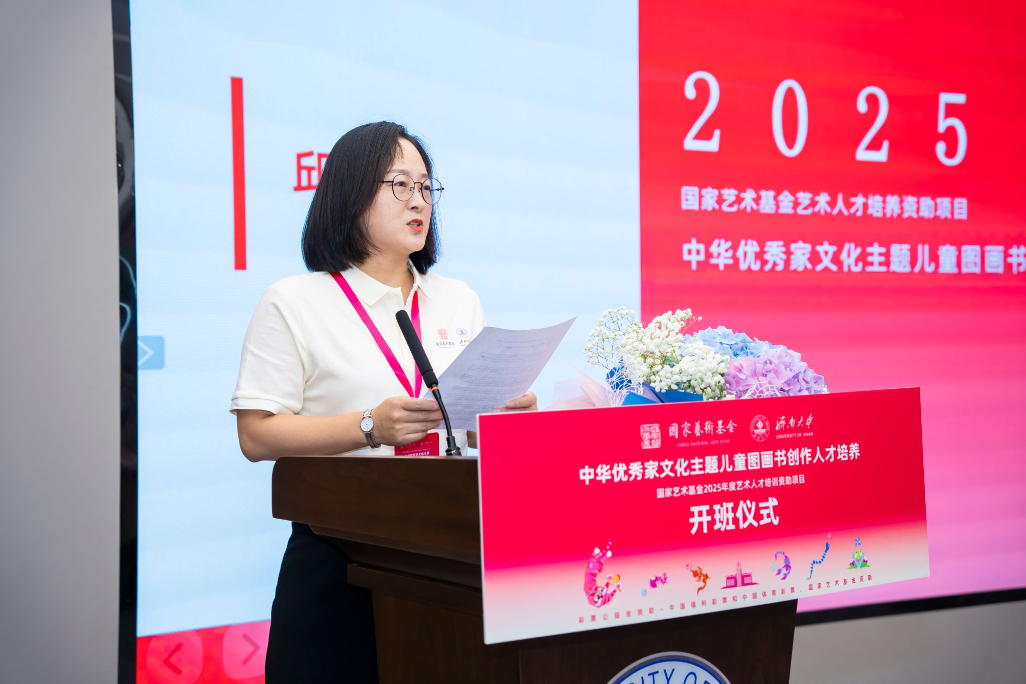 的办学历史和建设成就,他强调,本次项目实现了我校在该设计类人才培训项目上的零的突破,也是山东在艺术教育领域的一次重要突破。他希望全体学员以本次培训为起点,深入理解中华优秀家文化的思想精髓及其现代化创新转化,运用新的绘画手法赋能家文化表达,创作出主题精深、画面精湛、制作精良的儿童图画书佳作,为延续中华文脉促进新生代的文化复兴贡献力量。