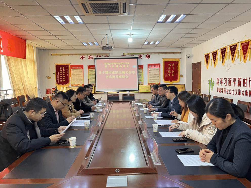 美术与设计学院党委书记陈春锋,副院长杨海波,党委副书记、副院长何贵亮及学院教学办、设计创新研究院、学院校友会等相关人员到槐荫区腊山街道张家庄村进行实地调研走访。槐荫区腊山街道办事处主任王政、副主任宁锋辉、张家庄村党支部书记李保勇、槐荫区文化馆非遗部主任时雪梅等人参加座谈和调研。