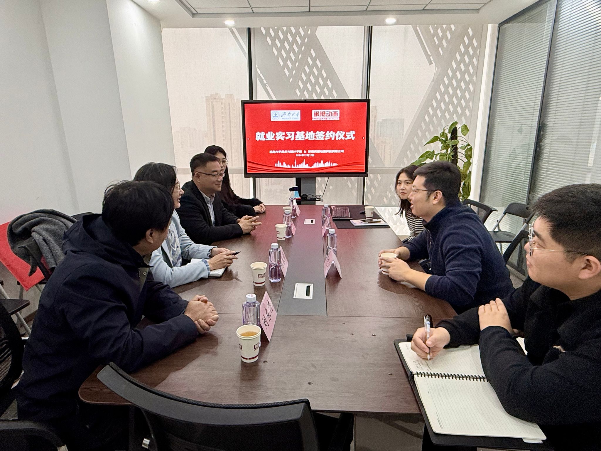 为贯彻落实党中央、国务院和省委、省政府关于做好高校毕业生就业工作的决策部署,加强校企交流,持续深入做好学院2025届毕业生就业促进工作,12月12日上午,美术与设计学院一行赴济南枫糖动漫科技有限公司开展访企拓岗暨产学研合作交流活动。济南枫糖动漫科技有限公司经理李利剑、动画制片人黄欣婷及相关部门负责人,美术与设计学院党委书记陈春锋,党委副书记、副院长何贵亮及教师代表参加活动。