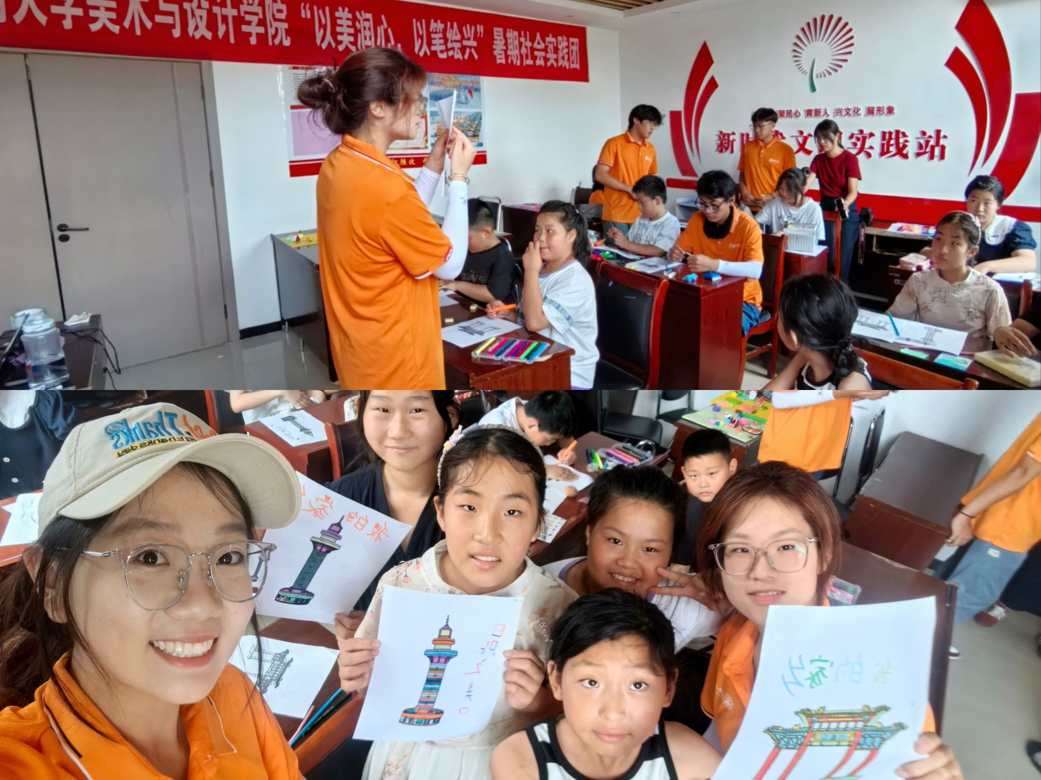 秉持“以美育人、以文化人”的实践育人理念,团队在两地开展乡村青少年美育课堂,通过“我画我家乡”主题创作及剪纸、书法等非遗体验课,引导孩子们感受中华优秀传统文化独特魅力,启迪审美心智。在五莲县,孩子们用画笔勾勒家乡与梦想;在郓城县,非遗融入课堂,拓展美育深度。真正让美的种子在乡村沃土生根发芽,让美育成为涵养乡风文明、筑牢乡村文化根基的重要力量。