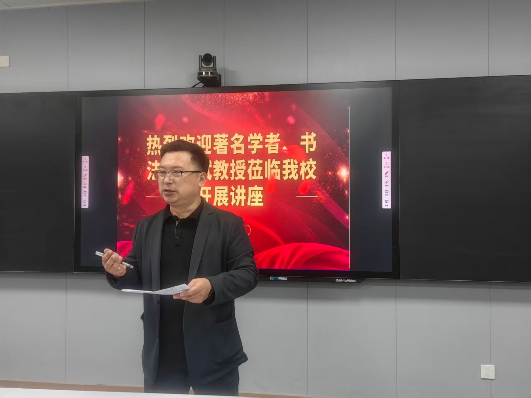 师生学术素养与科研能力,助力高水平科研成果产出,在学校社科处的统筹指导下,9月23日下午,美术与设计学院特邀中国人民大学中国书法与传统文化融合创新中心主任,中国人民大学文化产业研究院首席专家,上海交通大学二级教授、人文学院长聘教授、博士生导师周斌,作了题为“从论文写作到纵向课题申报”的学术讲座。学院党政领导班子成员、学院师生参加讲座。讲座由学院教授王书峰主持。